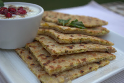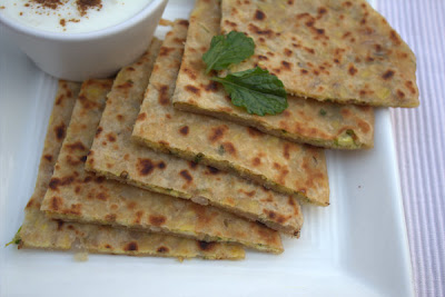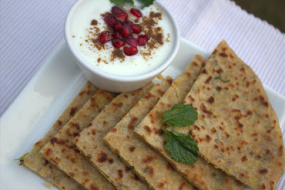 The third week begins, and for this week I have chosen to make Indian Breads.There is such a huge variety in Indian breads that I was left totally confused.This might look as an extension of the last week , as this too can be put under the Sindhi Cuisine category.These parathas are very popular in Sindhi homes.The breakfast culture is out so normally these are served for lunch.A bowl of fresh curd spiced lightly with a little boiled potato and some red rubies for that crunch..wow, this meal is totally delicious.The parathas can be relished with pickle or papads well.