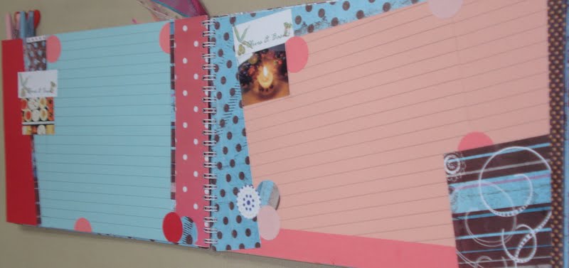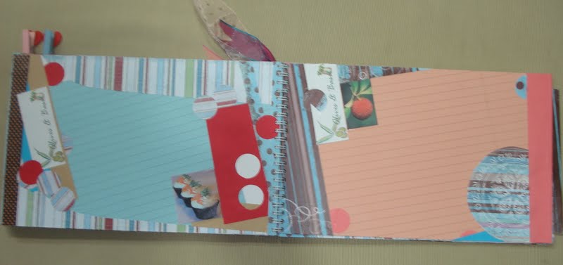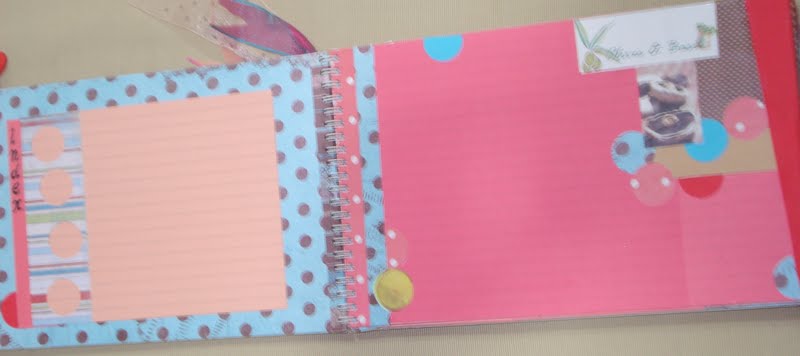 My first scrap book…when I had hardly any knowledge of scrap booking.I made this book about four years back.This was a book that I made for my daughter..she has a cooking blog and giving her this recipe book for her birthday seemed just appropriate.Throughout the book I used downloaded papers,which I got printed.I got ruled papers and stuck these on ivory papers….now I understand that I could have used some other cheaper paper…it was not going to show anyway.I used dots and stripes..and my circle punch to fullest!!