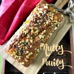 Nutty Fruity loaf is a loaf which is a perfect tea time or breakfast tea cake which is topped with nuts and preserved dried fruits .