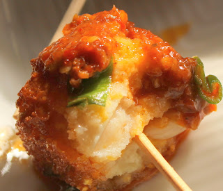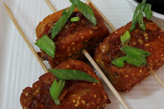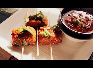 The cubes were crisp outside and soft inside and a little crunchy due to corn.The softness was a melting in the mouth kinds..guess due to blending cottage cheese to a paste.I had ready Schezwan from the hotel!!, but when I make it myself will surely post the recipe!!