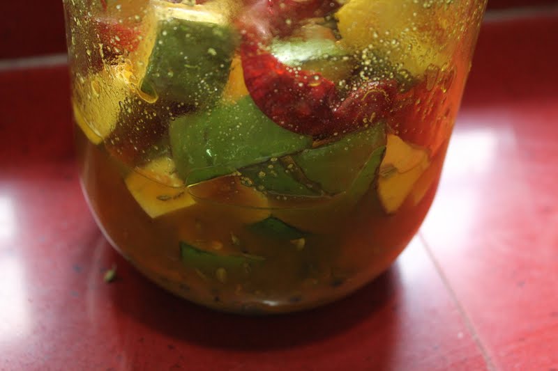 The next step was to weigh all the spices…..and then of course it was a simple procedure.But I must tell you the interesting part of this.after measuring all my spices I mixed them and suddenly realized that something was wrong with kalonji!!…I wore my glasses..but ..for sure this looked something else……I soaked it in water and..ah..this is sabza..!!thankfully I had not added the mango!I sieved the spices..it was easy to get turmeric and salt..then I used the bigger sieve and all the sabza was out!!..I finished adding the rest of the ingredients except kalonji..which I added the next day.