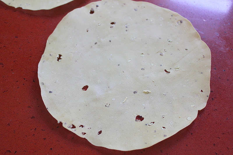 Place a papad on the work surface.(check it should not be torn or cracked)