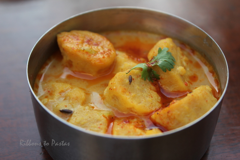 The gravy has umpteen options, some make with onions and tomatoes, some make with curd , while some make it a mix of Besan and curd.