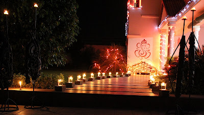 A Ganeshji  with terracota color highlights the whole set up.