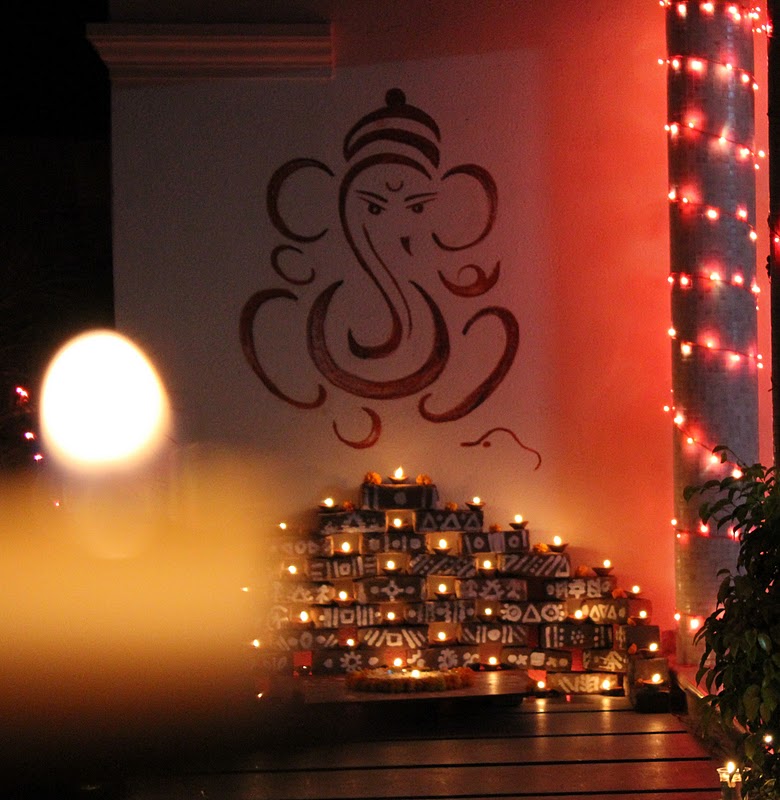 Rangoli is a Sanskrit word,signifying a creative expression of art by means of color and a symbol of goodluck.Although rangoli is made on different occasions but the charm of this art is best witnessed during The Festival of Lights…Diwali.This is made to welcome the guest and above all Godess Lakshmi…The Godess of wealth and Forune.