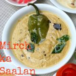 Mirch ka Saalan is a signature dish of Hyderabad. Sesame seeds, peanuts and tamarind are the three main ingredients which are key ingredients for Hyderabadi cuisine. The minute we talk of Mirch ka Saalan you know you are in for a delicious dish which has a amazing nutty flavor. The Mirch or the chilly used in the Saalan can be spicy or mild. I have used the big Bhavnagari chilly which is quite mild.