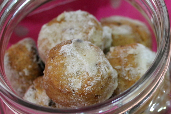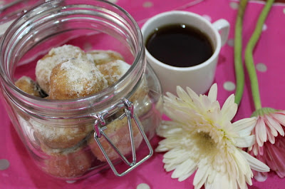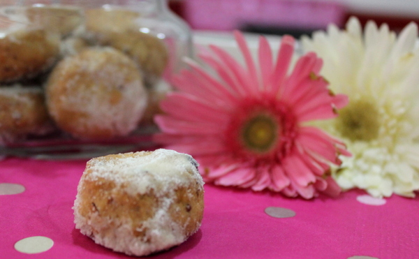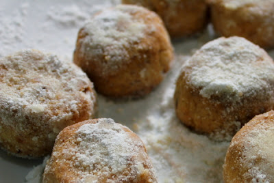 These are small round shortbread like cookies that contain ground nuts.These are rolled in castor sugar while still hot.They are also called Mexican Wedding Cakes.