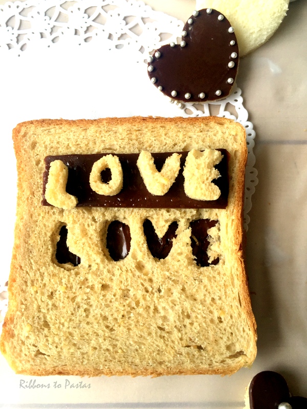 Take a slice of bread and cut out the word LOVE , leaving about 1″ from the top of bread slice.