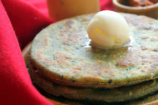 Lovely presentation and beautiful green!!! The dollop of butter on top of the paratha makes it more tempting!!!