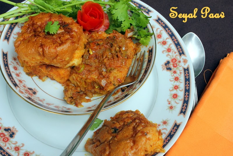 Seyal Pav is a Sindhi breakfast or evening snack which I normally cook for my neice when she gets back from school.She loves it and gets done quickly. The taste is absolutely delicious and is enjoyed best when it is piping hot , not that a cold one does’nt taste good, but for sure hot ones are much better.