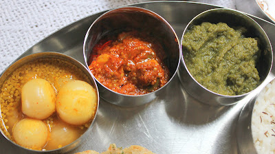 Preparing this thaali took about 1 and 1/2 hours.The karelas were peeled and pre pared 1day before.