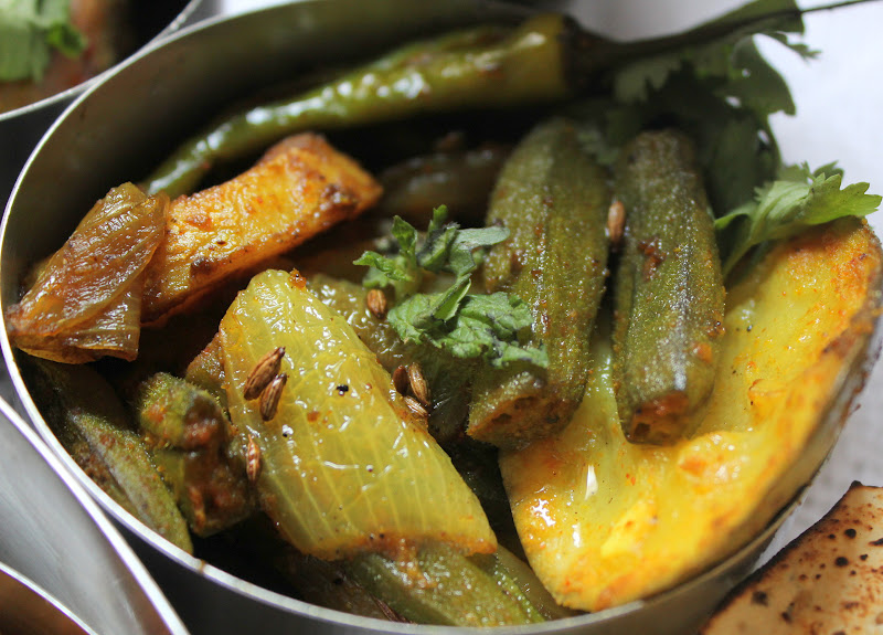 (Okra,onions, potatoes and raw mango simmered with dry indian spices)
