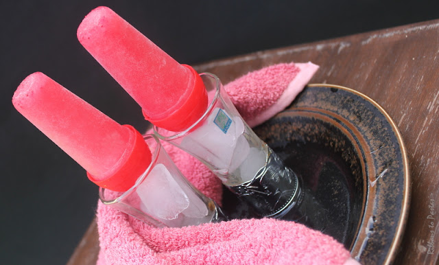 For Day 2 under summer coolers I have Strawberry Lollies. I made these with the ready strawberry syrup that I had. The syrup just had strawberry flavoring and some edible color. I normally stock a lot of such sharbats , squashes and crushes. They come in really handy during these prickly hot summers.