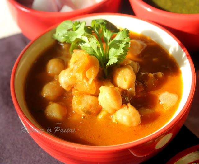 I like to make cholas / chick peas in different ways.This is a typical Sindhi style of serving chola.Dabbal is bread, and chaap is patty or tikki.This is one of the most popular combo platter that Sindhi Cuisine has..It is actually Sindhi street food. Mom tells me they used to have a dabbal chole wala outside their school in Pakistan.It did not even cost them 1 paisa. She says Rupee was a lot of money then…and to think what we pay now for a dish…..
