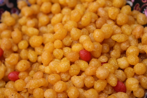 This is a sweet which is made from gram flour, tiny dumplings are deep fried and soaked in sugar syrup.The syrup is flavored with cardamon and saffron.