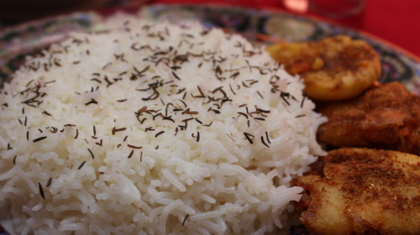 I always make rice in a rice cooker,adding double the amount of water ,some salt and a tsp of ghee. Garnishing with shahi jeera.