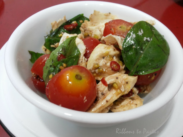 For the third day under salads I have a salad with cherry tomatoes and fresh mozzarella. This is a salad that my son made and we all loved it. The combination of basil, fresh mozzarella is absolutely awesome and the slightly tarty cherry tomatoes just enhances the taste. This kind of salad would be just a perfect for any kind of party.Again there is no recipe for this salad, adjust all ingredients according to your taste.