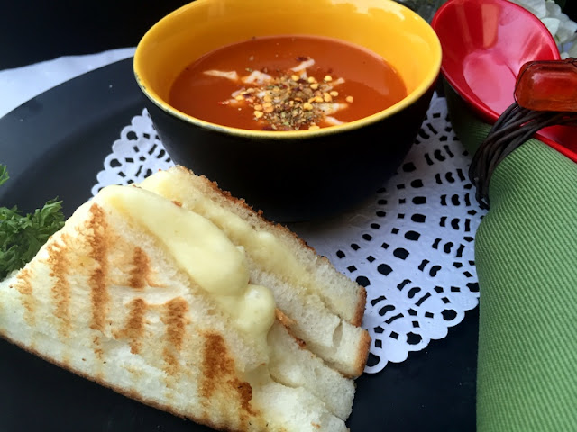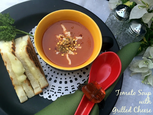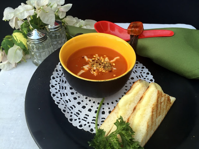 Soup and sandwich is a classic lunch combo. This can be ordered at any restaurant and the most popular soup is Tomato soup. As far as I think there is no pairing more comforting or better balanced than these two. We love this combo specially in winters. A hot bowl of tomato soup, with either a dollop of butter or some grated cheese, and a nice crisp grilled cheese sandwich . It sure is a perfect lunch. At times we love to add some fries too, but this time I wanted a perfect classic duo.