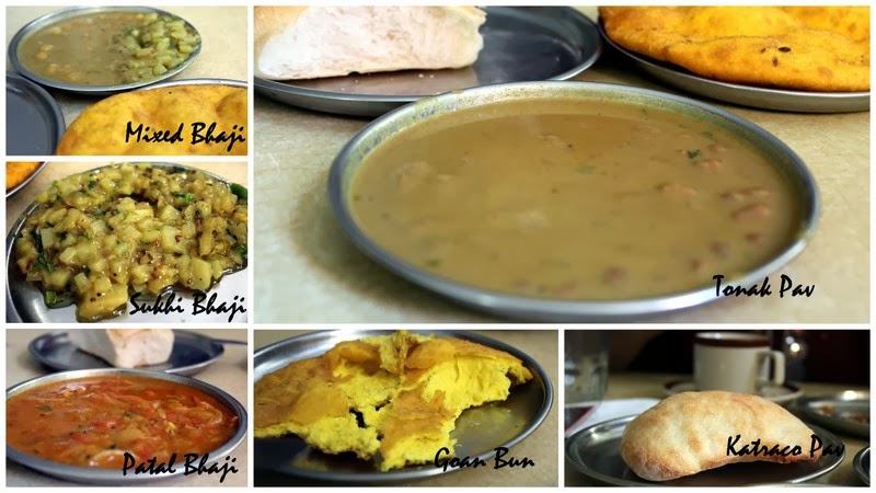 Amidst all the wedding rituals and functions Archana ( my co blogger , and a very good friend , who stays in Goa) came to pick me to take me around the city. We planned a early breakfast to savor at a local Goan restaurant called Tato’s .some of the dishes that we ordered were Tondak Pav, patal bhaji, suki bhaji, mixed bhaji with pav and buns. Now when Archana ordered buns I assumed them to be like the burger buns, but these were different. These were like big flat pooris and tasted like krack jack biscuits, a little salty, a little sweet. I am not a person of this combo taste so Archana ordered a katraco pav, which was a total treat. Absolutely hard shelled with a wonderful soft interior.It reminded me of my trip to Europe, where these buns are very popular.