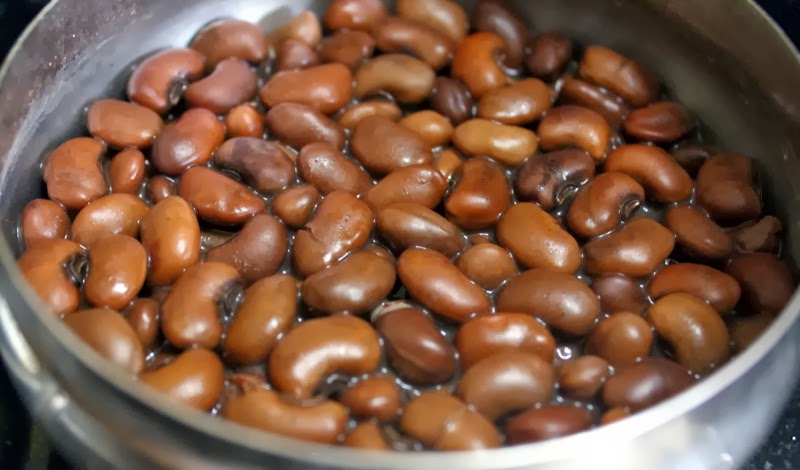 In another pan with another tsp or two of oil fry the onions till soft then add the boiled beans.
