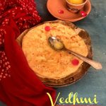 Vedhmi is a delicious ghee loaded Indian sweet flatbread from Gujrati Cuisine. It is also popular as Pooran Poli, Bobbatlu, Holige and Oligalu in the South.